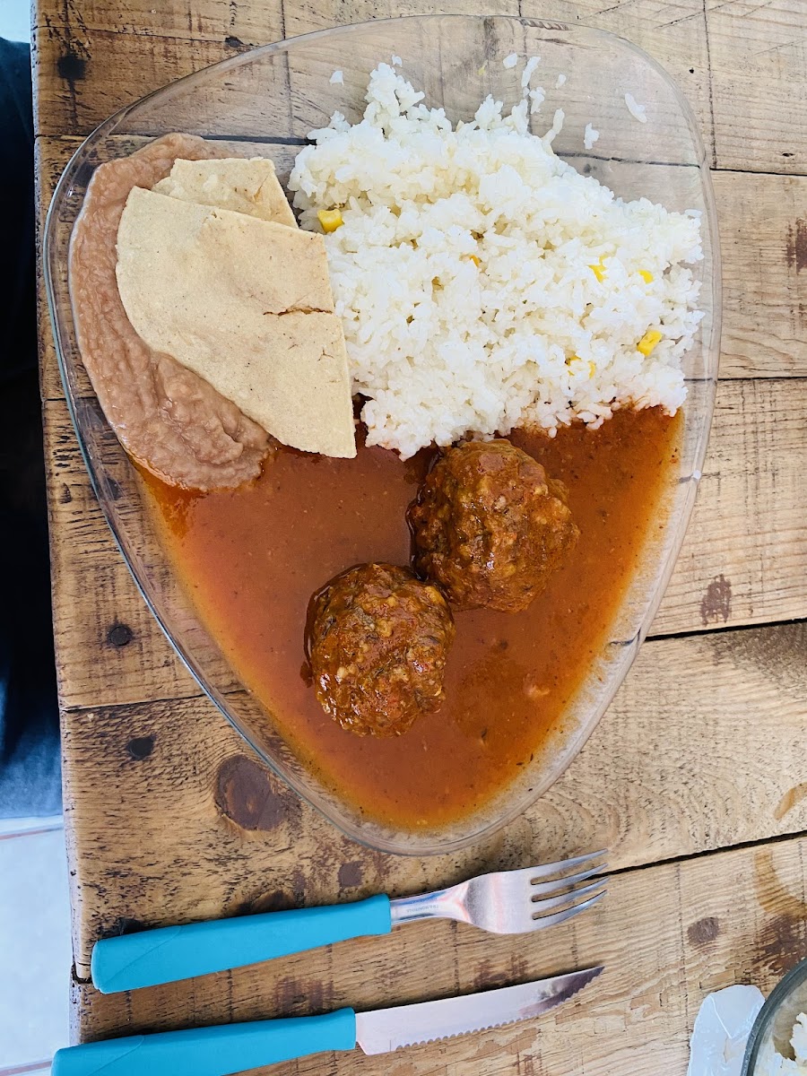 The menu is a celebration of traditional Mexican flavors, offering a variety of delicious options. For breakfast, try the Bolillo Compuesto, a scrumptious bolillo filled with refried beans, topped with melting queso, and accompanied by crispy fried plantain slices—all for just MX$41. If you prefer a heartier option, the Huevos Al Gusto features two eggs prepared just the way you like them, served alongside beans, cheese, and fresh tortillas, all for a modest MX$62.